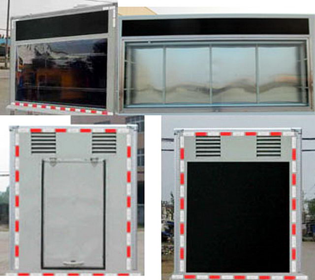 整车备注: 1、左右两侧均可选装LED屏、屏外可选装防护玻璃,侧面可选装滚轴灯箱装置,后部选装通风口或不加LED屏等。2、侧面为裙板结构,下沿离地高度400mm;后部为裙板结构,下沿离地高500mm;该车是用于广告宣传和科普宣传的专用车辆。随底盘选装驾驶室。