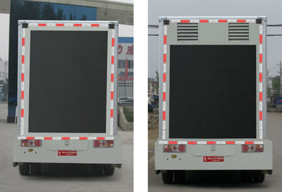 该车是用于广告宣传的专用车辆。该车两侧为LED屏,侧面选装滚轴装置,LED单色屏;后部选装LED屏及通风口。随底盘选装驾驶室。防护材料:Q235A碳钢,该车侧后包围装置已经符合车辆侧后防护尺寸标准要求,侧包围距地300mm,后包围距地350mm。驾驶室准乘人数2,3人与整备质量4365,4300一一对应。 | ||
