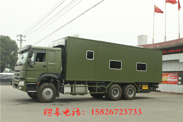 重汽豪沃24-28人军用宿营车:宿营车主要由重汽豪沃汽车底盘、扩