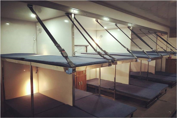 7)箱体内部每个床铺配备了LED柔性阅读灯、储物网兜、开关插座
