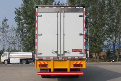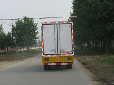 厢体顶部封闭,不可开启。驾驶室准乘人数(人):2,3与额定载质量(kg):12500,12435一一对应。选装侧面双门厢体及不带侧门厢体;随底盘选装驾驶室。防护材料:Q235A碳钢,连接方式:左右侧面及后下部防护装置采用焊接连接,后部防护断面尺寸(mm):150×50×5,后部防护离地高度(mm):520。 该车采用ISDe210 40,ISDe245 40,ISC8.3-230E40A,ISC8.3-245E40A型发动机。该车应装行驶记录仪。