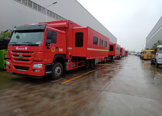 宿营舱主厢体为钢骨架、内、外蒙皮。外蒙皮为1.5mm后铝板,中间50mm厚阻燃微孔型聚氨脂(高寒地区为70mm厚保温层),内玻璃钢,箱体两侧扩展式方舱。 |
