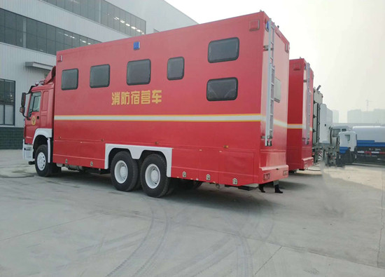 宿营车采用 中国重汽ZZ1257N4347E1底盘上装采用独立式箱体。结合车底盘的的具体指标,以整车承重、前后桥载荷等基本参数不超过规定值为原则,按照人机工程原理进行设计,具有宿营环境舒适、设备可操作性好、结构牢固、抗振减噪等特点。整车机动灵活,可快速反应,驻车后官兵可迅速就寝;8.35m保温隔热厢体合理划分为多媒体视频区、休息区和厕所,淋浴区,功能完善;厢体板壁铝蒙皮材料,采用特殊化学组分有效防止腐蚀,耐老化等; 整车性能符合《机动车运行安全技术条件(GB7258-2017)》、《汽车及挂车外部照明和信号装置的数量、位置和光色(GB4785-84)》、《厢式车通用规范(GJB79A-94)》、《汽车外廓尺寸限界(GB1589-2016)》、GB 50054-95 《低压配电设计规范》;整车外廓尺寸、轴荷及质量应符合GB1589-2016《道路车辆外廓尺寸、轴荷及质量限值》的规定; |