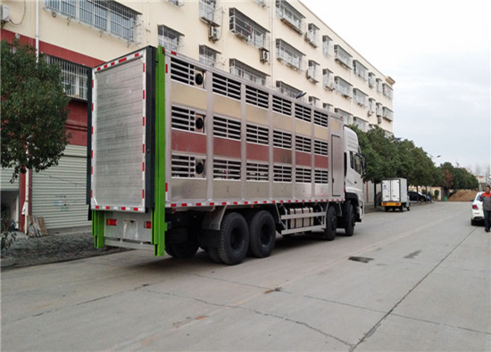 畜禽运输车是我公司在借鉴国内外产品的基础上,结合用户实际需求新研发的一款运输仔猪、生猪、鸡苗等畜禽的专用功能较强的运输车辆,是我公司倾力打造的一款专门面向活禽、牲畜运输市场的一款高端运输车,该款运输车旨在增强活禽、牲畜在运输过程中的舒适度、减少死亡率,提高运输效率,该车配备设施完善、自动化程度高。厢式畜禽运输车可用于成品猪、生猪、猪仔、鸡苗跨省运输,全程无泄漏,有粪液收集系统箱体采用全铝合金型材制作,质量轻、抗腐蚀性强。箱体中层安装保温隔板,顶部采用玻璃钢,有效避免高温传导,控制箱体内部温度。车厢内部采用全液压可调整分层结构,二层、三层、四层16栏(根据需求选择)饮水系统,侧推拉通风滑窗,带电子排风扇,视频监控,温度显示监控,中间有隔栏,每层约承重300头仔猪的重量。车厢后部选装垂直液压升降尾板,更实用! 购车电话:15826723733