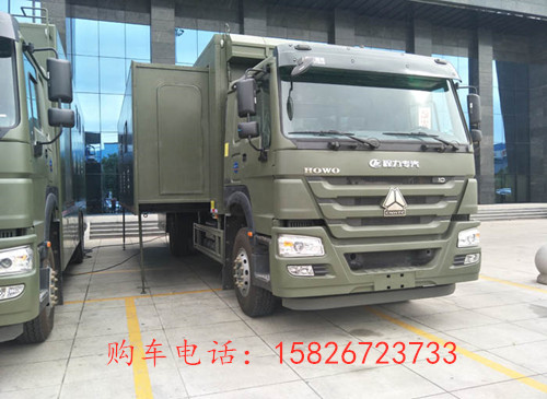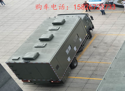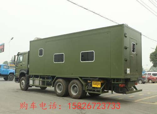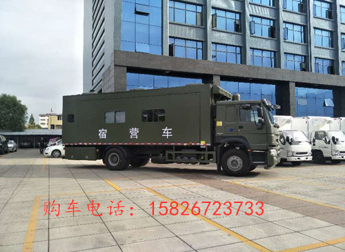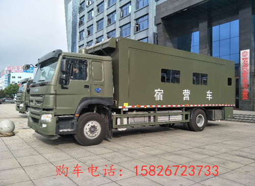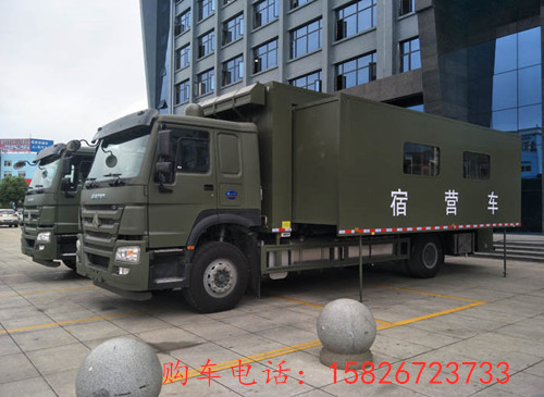 中国重汽豪沃宿营车展开后,里面有足够的空间放置床铺位,可以住到28人左右。更多多功能军用宿营车参数资料请来电咨询购车电话:15826723733 微信同号 欢迎来电!