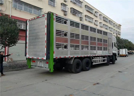 恒温车厢(夏天制冷,冬天制热,相当于空调房),通风厢体,3层或4层空间,上两层(或上三层)可液压升降(调节空间后可运输体形较大的幼崽,或者可直接装载成年猪牛羊等家畜),可喂水,简易食料。极大的提高幼崽的存活率,适合大型养殖场长途远距离运输家畜幼崽,也可适用于动物园转运中小型活体动物