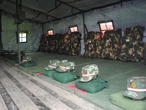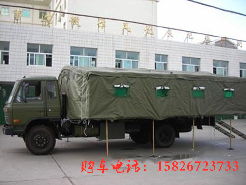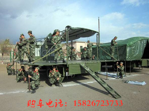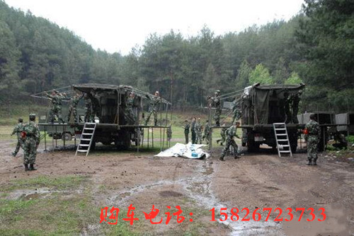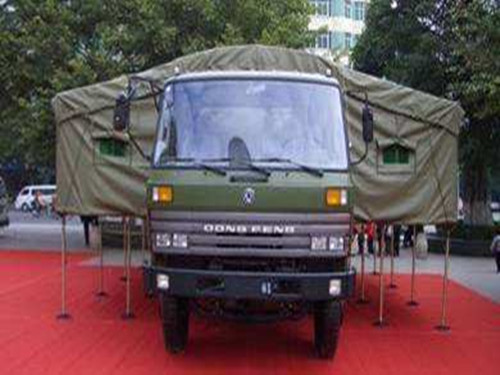 22-26人军用宿营车适合于部队、勘探、抢险等野外作业环境。其底板采用铁木混合结构,折叠式双边板,增设活动支撑杆,可拆式帐篷。平时可做运兵车、普通高栏板车厢使用;22-26人军用宿营车需野营时,放平双边板并支撑好,搭好帐篷,达到快速展开和收拢就可形成一座面积不同的高台帐篷,可供不同编制人员住宿使用。