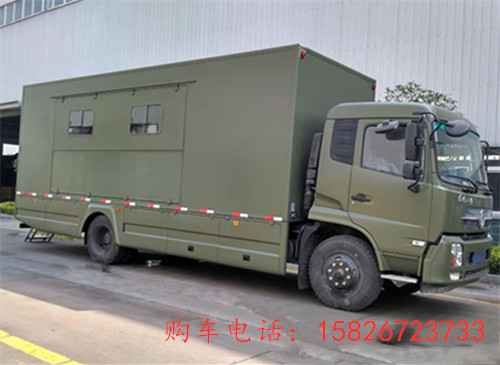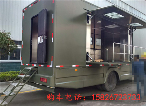 功能说明: 东风天锦军用餐车,后勤保障炊事车每小时提供300人就餐和开水, 采用东风天锦排半驾驶室,康明斯180马力-210马力国五发动机,东风6挡变速箱,5吨前桥10吨后桥,10.00-20钢丝胎,最高时速为每小时98公里,半个小时烧200㎏开水,餐份构成:主食1~2种,副食3~4种,汤1种。配有轴带发电机、外接电源、逆变电源三种供电方式。逆变电源功率: 1kVA;轴带发电机功率: 5kVA;净水携带量:≮230L;底盘油箱容积:160L;副油箱容积:160L