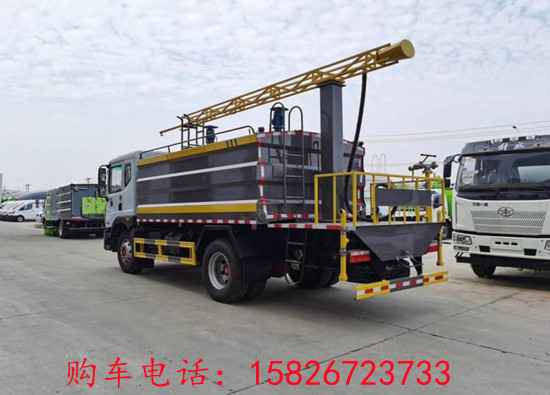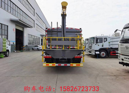 上装配置:采用瓦楞方箱制作,采用Q235碳钢,箱体边4底5,容积:12方,标配大功率50/110水泵,万达液压回转机构,带自动回流,整车气动控制,驾驶室操作,箱顶2个1.5千瓦电机,3个摄像头(流量表,喷洒杆,整车尾部),驾驶室带彩色视频可回放,遥控液压控制装置,并配有液压防沉淀搅拌装置,电子流量计,涡流喷射带喷头,8个喷嘴,气动控制喷头,自动停喷,喷洒高度4.3米-5.2米,臂宽度5米,勾档停车可感应3米,7.8Kw柴油发电机组,叶片式绞龙机构,可选装洒水车功能。