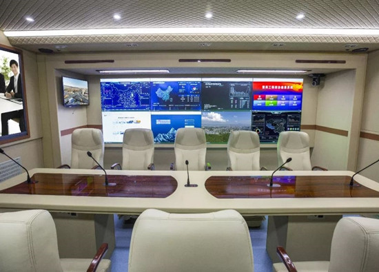 ②军用应急通信指挥车、车内功能分区多样,具有现场会议系统、监控摄像系统、通信办公系统、视频矩阵系统等功能模块,同时可根据各类应急需求搭载微波通信系统、动中-通或静中-通卫星图传系统,实现实时应急通信的需求。