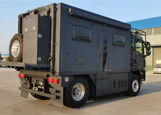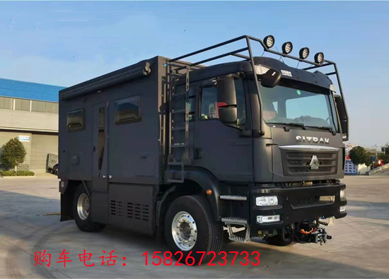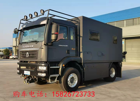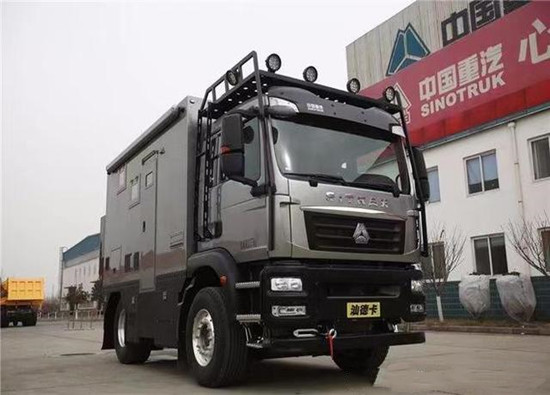 汕德卡房车,四驱房车,越野房车,真正的三把差速锁!重汽汕德卡房车底盘,柴油6.8T,274马力,峰值扭矩1060N.m,豪沃10速AMT自动挡变速箱,康迪泰克CONTITECH四气囊悬架,底盘带升降系统,可根据不同路况调整底盘高度