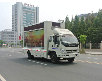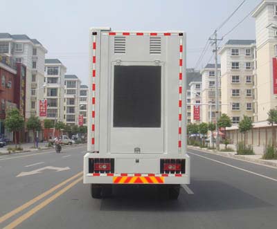该车是用于广告宣传和科普宣传专用车辆。车辆右侧选装LED屏,随底盘选装驾驶室。侧防护和后防护与车辆结构为一体。车辆后部下边缘离地高度550mm。选装新保险杠,大轮罩及外置遮阳板。