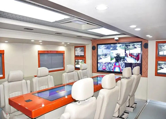 军用指挥方舱、移动指挥通信方舱可在突发公共事件过程中实现现场的应急通信、网络、视频会商等功能,具体功能如下: 现场应急通信功能:通过数据和语音通信方式,保证移动应急平台和指挥中心、现场各部门人员等之间图像、数据、语音的通信。 现场网络功能:通过多种手段实现现场各部门连接及接入移动应急平台,以保证移动应急平台可作为现场应急最高的指挥场所。