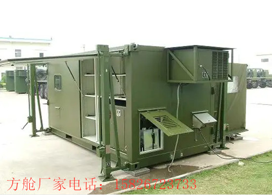 军用方舱是装载军事设备和人员并提供所需要的工作条件和环境防护的由夹芯板组装成型的可移动厢体,适于作为武器装备系统、指挥通讯中心、技术支援和后勤保障装备以及各类军事装备和人员的装载体和工作间。它广泛应用于指挥、控制、侦察、探测、通信、电子对抗、机要、文化宣传、动力电站、检测试验、维修保养、备件储运、抢救、勤务作业、气象、计量、军需、医疗卫生、野营生活等各个领域。