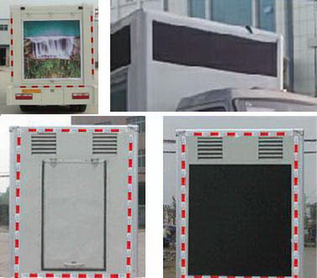 整车备注: 该车是用于广告宣传和科普宣传的专用车辆。侧面为裙板结构,左下沿离地高度360mm,右下沿离地高度450mm;后部为裙板结构,下沿离地高510mm。侧面以及后部裙板与防护相干涉,故防护可豁免。两侧均可选装:LED升降或者不带升降屏, 滚轴灯箱,条屏, 活动舞台; 后部可选装:通风口,后开门;前部可选装通风口或LED条屏。