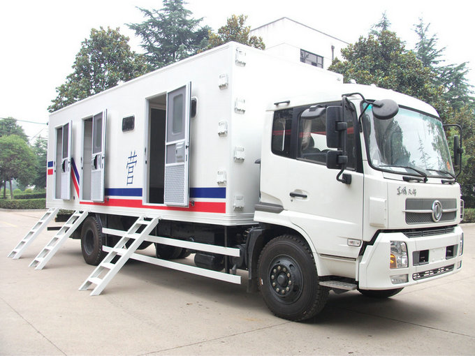整车由机动性能高的二类汽车底盘、扩展方舱、扩展装置、支撑装置、电气系统、空气调节体统、影视设备、运、宿设施、卫生设施等组成。