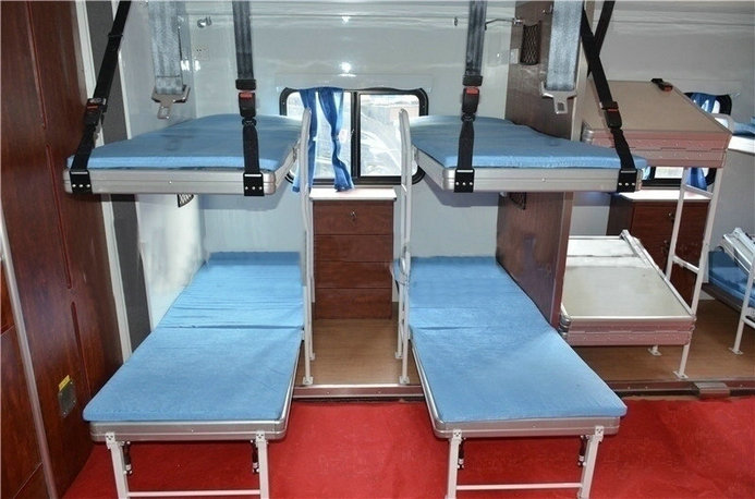 该车能满足24人的运输能力、住宿空间、基本生活保障功能、空气调节、温度控制功能,并具备影视功能,配备自救工具、灭火器具等安全工具,安装接地、避雷、漏电保护措施,对讲通讯机。