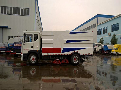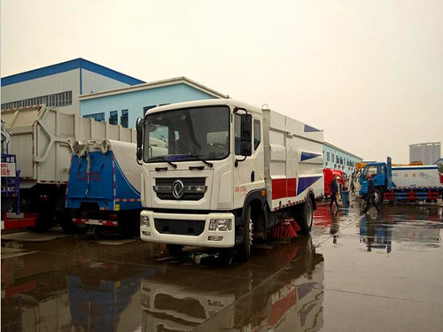 东风D9大多利卡洗扫车七大优点: 1. 采用吸扫混合的方式收集垃圾,湿式除尘、电液控制,液压倾翻卸料的作业方式对路面进行清扫作业。 2. 采用副发动机专门驱动风机和液压系统,保证行驶过程中能继续工作,保证清扫过程的连续性。 3. 采用“中置四扫盘+喷雾降尘装置+中心隔板+后置吸嘴”的结构布局,让清扫过程中砂石不在飞溅扬尘,此布局便于清扫装置与吸盘的调整与维护,转场作业时整车通过性好。 4. 副发动机与风机之间的传动设置设有自动离合器,可保证副发动机空载启动和停机时与风机的自动脱离,降低了对副发动机的冲击,提高了副发动机的工作可靠性和使用寿命。 5. 扫盘有遇障碍自动避让保护功能和自动复位功能,遇到障碍自动回缩,越过障碍自动回位。 6. 扫盘转速可根据各种不同的清扫工况来调整转速,能保证在各种污染状况下都有良好的清扫效果 7. 采用先进,高效的专用风机和可随路面自动找平的全浮动式吸嘴,清扫效果好,使用寿命长。 | ||