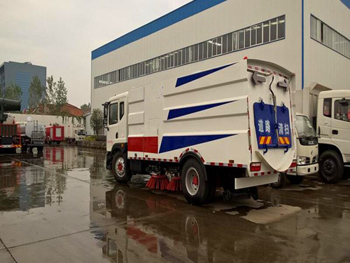 | 专用性能: | 东风D9大多利卡洗扫车底盘配置:东风D9系列,2315排半驾驶室,5200mm轴距,ISB180 50六缸发动机(康明斯180马力),法士特8档变速箱,250双层车架,10T后桥,9.00R20钢丝胎,空调,断气刹,ABS,气囊座椅。 东风D9大多利卡洗扫车改装配置:带不锈钢箱体,容积为9立方,带2个中置扫盘,康明斯170马力副发动机;意大利马达;德国高压水泵(前冲/侧喷/中喷/后喷雾/冲洗水枪/垃圾箱自洁装置);万向高压路沿清洗喷头,威龙低压泵(前冲);不锈钢垃圾箱;不锈钢管高压管路;德国控制器;韩国控制箱;PLC一键控制;尾部LED箭头灯;机油、垃圾箱、水箱均带防溢低水位报警装置;倒车及洗扫状态室内监视器。18m高压冲洗卷盘。清扫宽度3.5m;清洗压力10MPa;吸入粒度φ110mm。 东风D9大多利卡洗扫车七大优点: 1. 采用吸扫混合的方式收集垃圾,湿式除尘、电液控制,液压倾翻卸料的作业方式对路面进行清扫作业。 2. 采用副发动机专门驱动风机和液压系统,保证行驶过程中能继续工作,保证清扫过程的连续性。 3. 采用“中置四扫盘+喷雾降尘装置+中心隔板+后置吸嘴”的结构布局,让清扫过程中砂石不在飞溅扬尘,此布局便于清扫装置与吸盘的调整与维护,转场作业时整车通过性好。 4. 副发动机与风机之间的传动设置设有自动离合器,可保证副发动机空载启动和停机时与风机的自动脱离,降低了对副发动机的冲击,提高了副发动机的工作可靠性和使用寿命。 5. 扫盘有遇障碍自动避让保护功能和自动复位功能,遇到障碍自动回缩,越过障碍自动回位。 6. 扫盘转速可根据各种不同的清扫工况来调整转速,能保证在各种污染状况下都有良好的清扫效果 7. 采用先进,高效的专用风机和可随路面自动找平的全浮动式吸嘴,清扫效果好,使用寿命长。 | ||