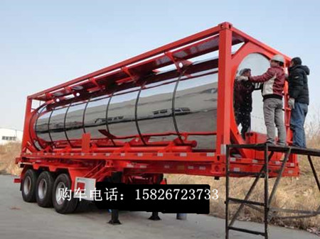 化工液体罐式集装箱运输车液态硝酸铵集装箱罐式运输车、液态硝酸铵集装箱罐式运输半挂车,我公司专业生产销售液态硝酸铵运集装箱罐式输车、液态硝酸铵集装箱罐式运输半挂车罐体内胆采用304不锈钢材料制做,罐体为通舱,罐体可做20英尺30英尺40英尺。 液态硝酸铵集装箱运输车、液态硝酸铵集装箱罐式运输半挂车保温材料采用80-100(mm)厚聚氨酯发泡材料保温,保温效果良好。罐体外层(保温层保护层)采用2mm厚304不锈钢板,卸料管采用直径100mm不锈钢无缝钢管,外层岩棉保温。罐体内部安装不锈钢管道加热装置(选装加热槽)、压力表、紧急切断装置(不锈钢海底阀)、ABS刹车系统、整车一律采用不锈钢球阀。更多液态硝酸铵集装箱罐式运输车、液态硝酸铵集装箱罐式运输半挂车配置、参数图片请来电咨询购车电话:15826723733