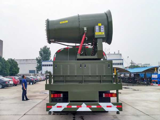 功能配置:带前部冲洗路面喷洒装置、后部扇形降尘喷洒装置,两侧面喷洒装置,带后部工作平台、平台上安装绿化洒水炮(炮喷射形状可调),可调直冲状、大雨、中雨、毛毛雨,可连续调节,最大射程可达28米,垂直吸程6.5米,扬程14米,另加装高效率车载式风送喷雾机,喷药炮雾化效果好,可远程喷雾,水平射程达25米。带消防接口、自流阀,可自吸自排。