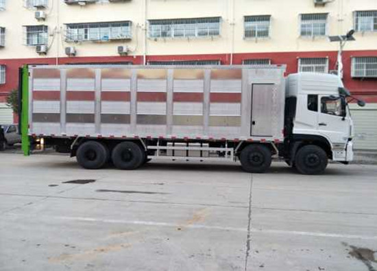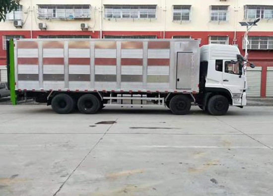 东风天龙420马力9.6米箱长铝合金畜禽运输车,猪仔运输车、种猪运输车内部实现的有喂食喂水系统,喷淋清洁系统,带有车载式小型发电机,厢体的左右侧带有通风窗口,在春季和秋季时便可打开窗户使车内通风,在炎热的夏季和寒,恒温控制,连接驾驶室温度检测仪,实时可观察厢的温度,现在在市场上畜禽运输都以栅栏运输车为主,在运输过程中畜禽处于露天状态,受炎热、寒冷、雨雪天气影响较大,易造成畜禽,尤其是幼小畜禽致病、鸭苗等禽类运输。供电系统配备微型发电机。购车电话:15826723733