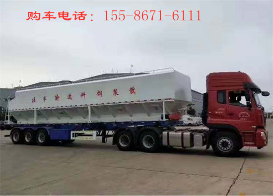 60方半挂饲料运输车整车尺寸:13000*2550*3995 大梁宽度:960mm, 牵引销:90号 轴距7180*1310*1310 纵梁高度:200/450, 纵梁腹板厚度:6mm, 水箱尺寸:1.5米*0.6米 轮胎规格及数量:朝阳276/12R22.5 /12条 弹簧片数及规格:10*13 车桥规格/abs:广东富华13T车桥,16T刹车带ABS带低压报警,自动调整臂 支腿规格及形式:28T单动,气瓶:2个铝合金