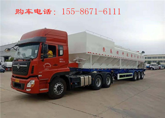 60立方散装饲料运输车 上装配置:罐体材质采用4mm优质碳钢板, 液压配件采用美国进口 电动:整车3条绞龙,由3个5.5KW电机带动,顶部绞龙用液压控制举升,可左右旋转180°。