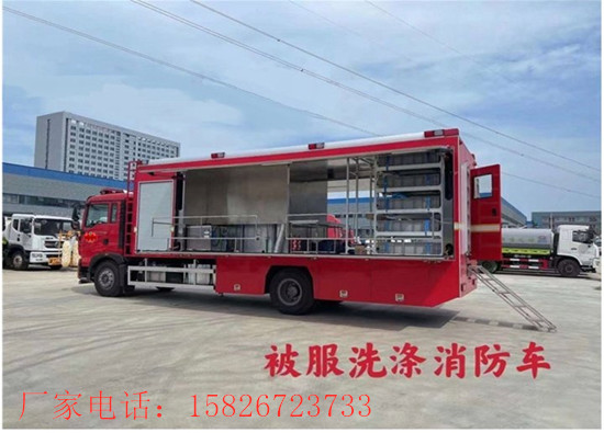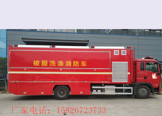 被服洗涤车、应急救援被服洗涤车 消防救援被服洗涤车,集洗衣、烘干、挂烫等多功能于一体。该型装备操作使用方便,机动性能好,自动化程度高,满足一小时能洗涤50kg(50套)干重被服;40~55分钟烘干50kg(50套)干重的被服需求。