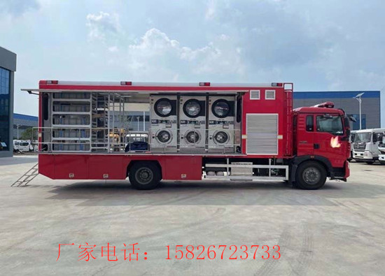 被服洗涤车、应急救援被服洗涤车主要由重汽二类汽车底盘、洗涤方舱、洗涤设施,空气调节系统、水路系统、电气系统等组成。具有齐全的卫生设施。车辆的功能介绍车辆改装设计:整车改装设计符合国家对汽车设计改装的相关要求;在保证运载工具 行驶安全的前提下,充分利用汽车底盘的有效载荷及底盘尺寸;能满足车载设备安装、运行和人员工作、生活需要。整车机动灵活、可靠性高、环境适应性好,性价比高。